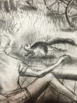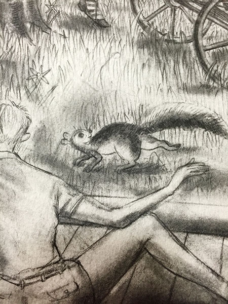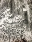 アリスは、その子をだいて外に出ました。「ブーブー、ブーブー」赤んぼうの顔をのぞきこむと、「あら、鼻も目もブタにそっくりだわ。でもブタにしては、なかなか器量よしね」Alice, holding the baby went outside. The baby gruned. Alice peered at the baby’s face. “Oh, your nose and eyes are just like a pig’s. But you’re very handsome for a pig“ said Alice.